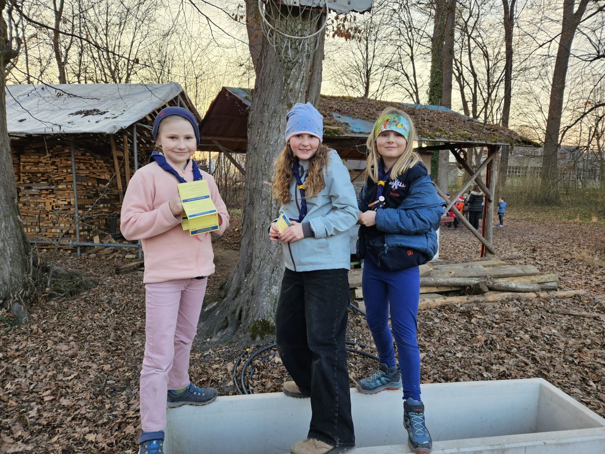 Damit man den gelben Halstuchknoten, ersten oder zweiten Stern erreicht, muss man einige Aufgaben aus unserer Erprobungskarte ablegen. Normalerweise widmen wir uns hauptsächlich am Sommerlager dem Ablegen, da wir hier genügend Zeit haben, um auf jede Aufgabe speziell einzugehen. Aber natürlich versuchen wir auch unter dem Pfadfinderjahr mal eine Ablege Heimstunde zwischen dem Programm einzubauen, damit man wenigsten ein oder zwei Punkte abhaken kann. Gerne kann man auch zu Hause die Erprobungskarte durchlesen und gezielt mit einem vorbereiteten Punkt bei jeder Heimstunde bei einem Leiter zum Ablegen nachfragen. Neben dem Ablegen wurden einige Spiele gespielt und die Heimstunde wurde mit ein paar Gebeten im Schlusskreis beendet.