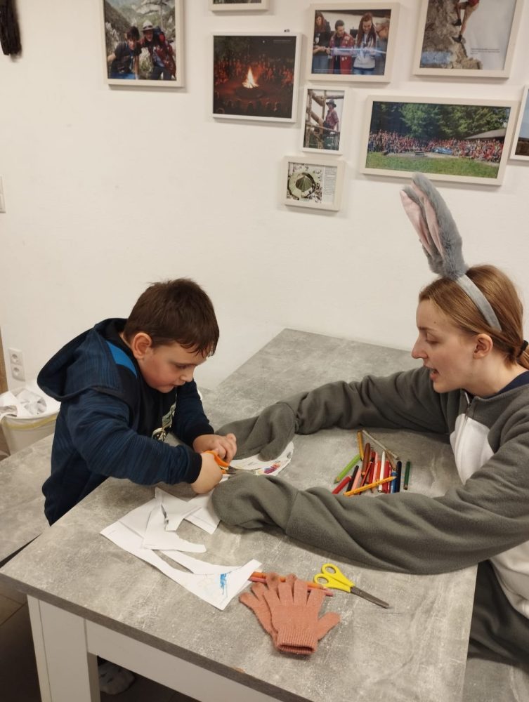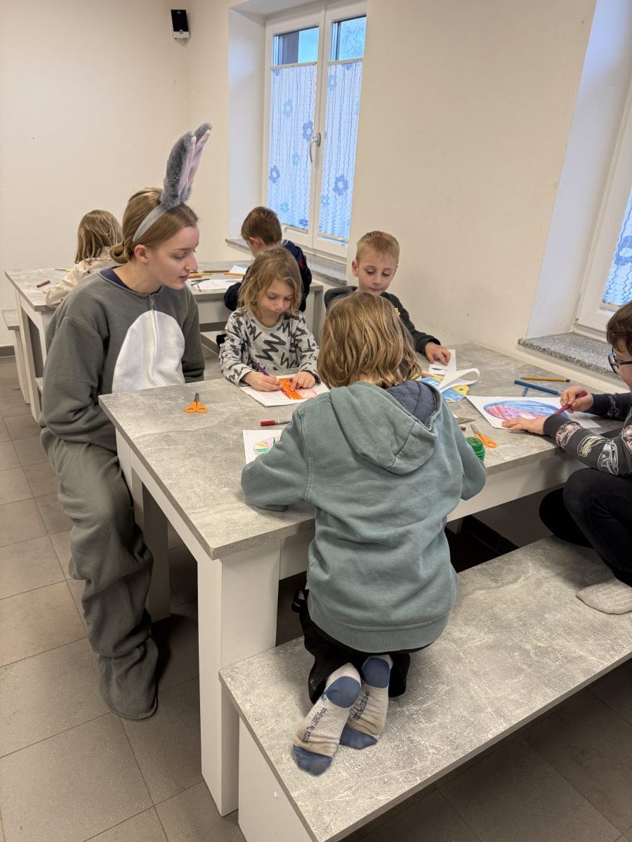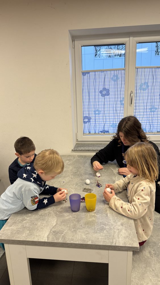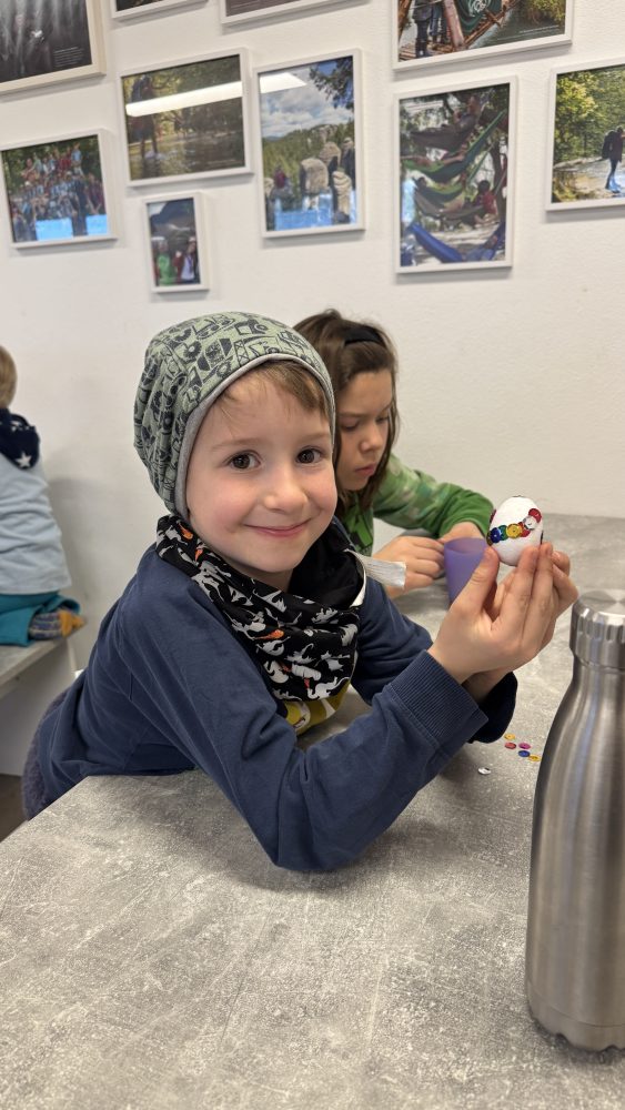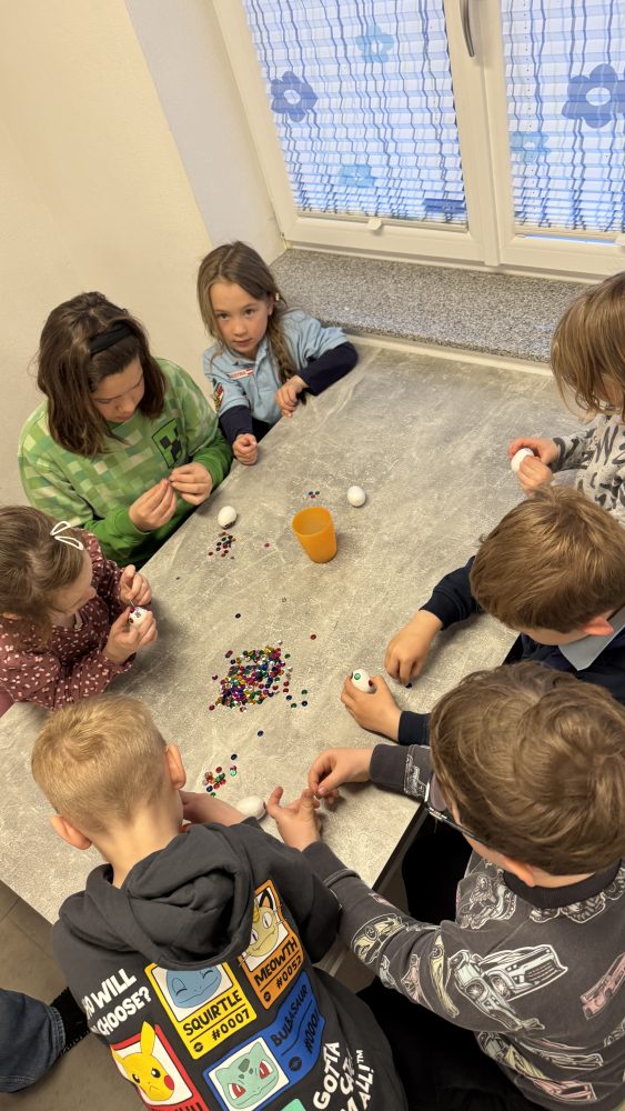 Natürlich halfen wir auch dieses Mal und so bastelten und bemalten wir fleißig die mitgebrachten Eier.