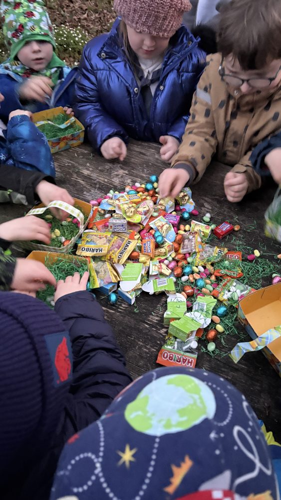 Zum Danke bereitete der Osterhase schon eine kleine vorösterliche Suche vor und die dabei gefundenen Süßigkeiten teilten wir dann gerecht auf. Ganz nach dem Motto der Biber.